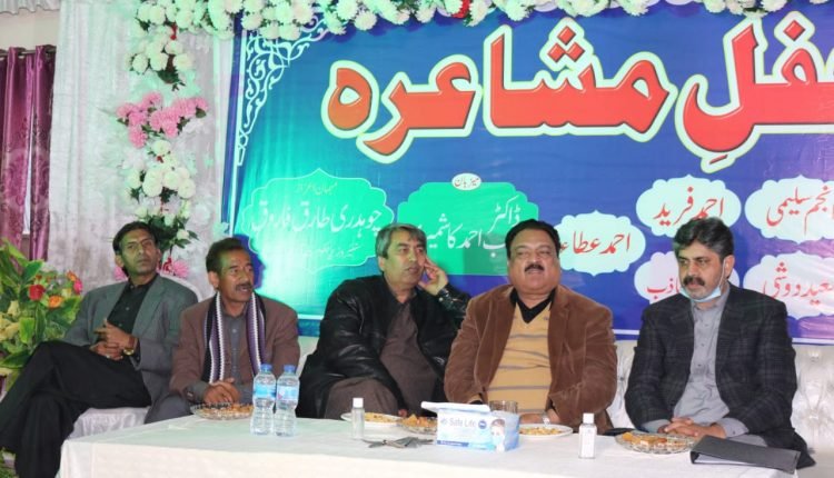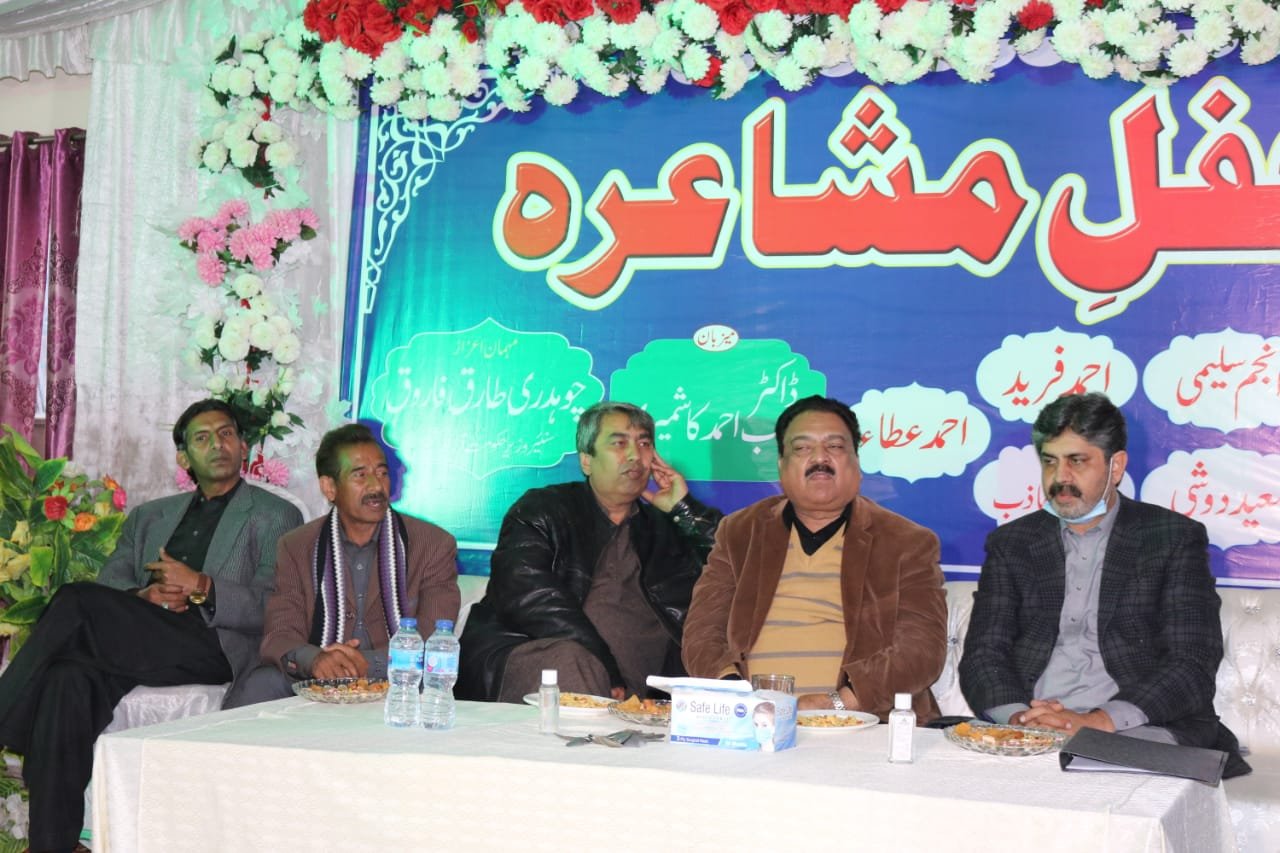 بھمبر۔ بھمبر میں ڈسٹرکٹ ہیلتھ آفیسر ڈاکٹر محبوب احمد کی میزبانی میں ادبی مشاعرے کا انعقاد کیا گیا۔ محفلِ مشاعرہ میں ملک کے معروف و مشہور شاعرمحترم عباس تابش نے خصوصی شرکت کی۔ سینئر وزیر آزادکشمیر محترم طارق فاروق نے بطور مہمانِ خصوصی شرکت کی