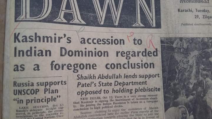 قبائلیوں کی فوج کشی سے 10 دن قبل روزمامہ ڈان میں 13 اکتوبر 1947 ء کو ایک خبر شائع ہوئی ۔ جس میں بتایا گیا ہے کہ کشمیر کا مہاراجہ ریاست کے ہندوستان کے ساتھ الحاق کرنے والا ہے ۔ اس غرض سے اندرون خانہ تیاریاں اور ہندوستان کی حکومت سے اس کا نامہ و پیام جاری ہے ۔ یہ خبر اخبار کے دہلی کے نمائندے نے بھیجی تھی ۔