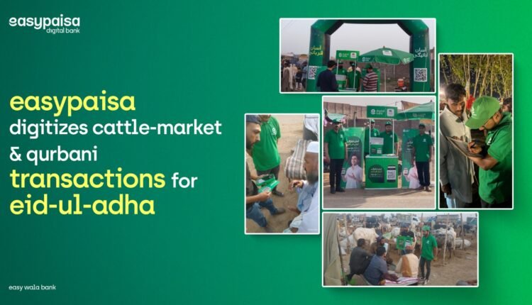 عیدالاضحیٰ پر قربانی میں ایزی پیسہ ڈیجیٹل بینک نے مویشی منڈی میں خرید و فروخت کو ڈیجیٹل بنانے اور صارفین کو اپنی قربانی کی مذہبی ذمہ داریاں آسانی سے ادا کرنے کی سہولت فراہم کرنے میں اہم کردار ادا کیا ہے۔