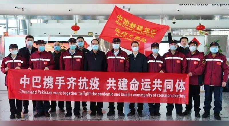 کورونا وباء سے نمٹنے کیلئے ا چینی ماہرین صحت اور ڈاکٹرز کی آٹھ رکنی ٹیم ارمچی سے خصوصی پرواز کے ذریعے 2 ٹن امدادی سامان لے کر نیو اسلام آباد انٹرنیشنل ایئرپورٹ پہنچی۔ وزیرخارجہ شاہ محمود قریشی، سیکرٹری خارجہ سہیل محمود، چینی سفیر ژاؤ جنگ چینی ڈاکٹرز کا استقبال کیا۔