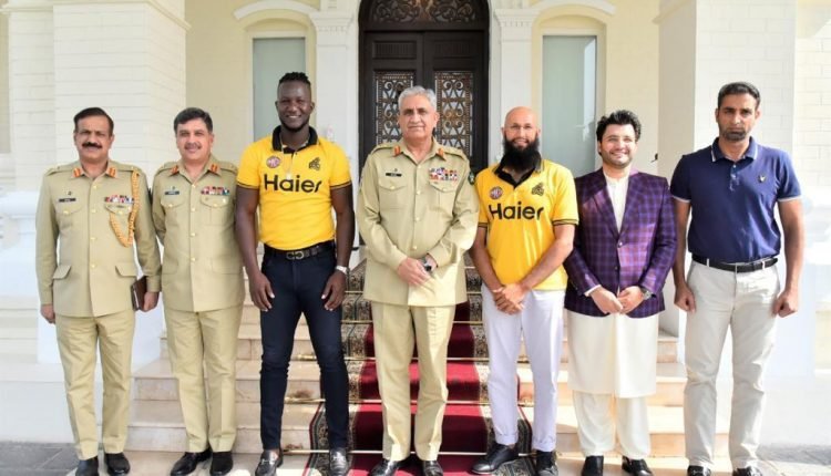 آرمی چیف سے ملاقات کرنے والوں میں پشاور زلمی کے مالک جاوید آفریدی ،سابق ٹیسٹ کرکٹر محمد اکرم ، سابق ویسٹ ا نڈین کرکٹر ڈیرن سیمی اور سابق ساوتھ افریقن اوپنر ہاشم آملہ شامل تھے ۔ اس موقع پر آرمی چیف نے پاکستان میں بین الاقوامی کرکٹ کی بحالی کے لئے کرکٹرز کے کردار کی تعریف کی اور اس امید کا اظہار کیا کہ پی ایس ایل کے باقی میچز کابھی جلد انعقاد ہو گا ۔پاکستان سپر لیگ کے دوبارہ شروع ہونے سے کرکٹ کی دلدادہ پاکستانی قوم کو پھرسے خوشیاں میسر آئیں گی ۔غیر ملکی مہمانوں نے آرمی چیف کوپاکستان کے مختلف حصوں میں ا پنے دوروں سے بھی آگاہ کیا۔