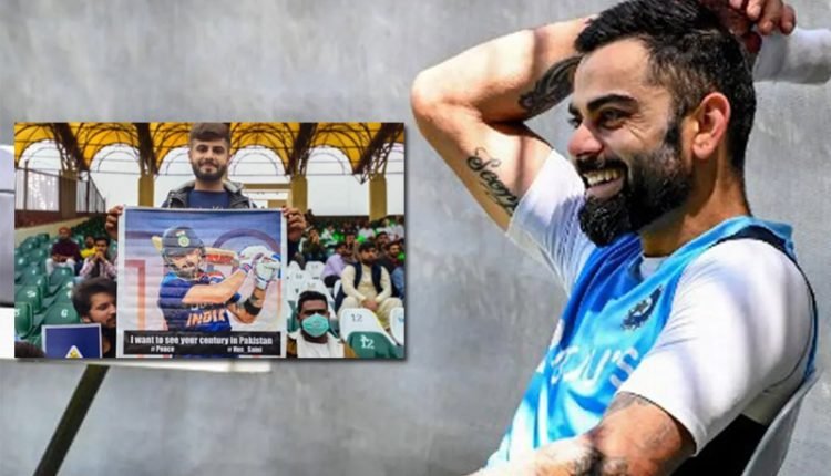 گزشتہ روز ملتان سلطان اور کوئٹہ گلیڈیٹرز کے میچ کے دوران ایک نوجوان کی تصویر وائرل ہو رہی ہے، جس میں اس نے ویرات کی تصویر کا پوسٹر اٹھا رکھا ہے جس پر درج ہے کہ وہ ویرات کوہلی کی سنچری پاکستان میں بنتا دیکھنا چاہتے ہیں، ساتھ ہی نوجوان نے امن کا ہیش ٹیگ کا بھی استعمال کیا۔