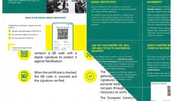 یورپی یونین نے کورونا وائرس وباء کے باعث سفر کو آسان کرنے،اور سفری پابندیوں کے خاتمے کے لئے ویکسین سرٹیفیکیٹ جاری کردیاہے۔گرین ڈیجیٹل سرٹیفیکیٹ سے یورپ کے اندر سفر کے لئے آسانی پیدا ہوگی۔یورپی میڈیسن ایجنسی کی منظور کردہ ویکسین کے علاوہ دوسری ویکسین بھی استعمال کی اجازت ہوگی۔سرٹیفیکیٹ سے ظاہر ہو گا کہ مسافر کو ویکسین لگ چکی ہے