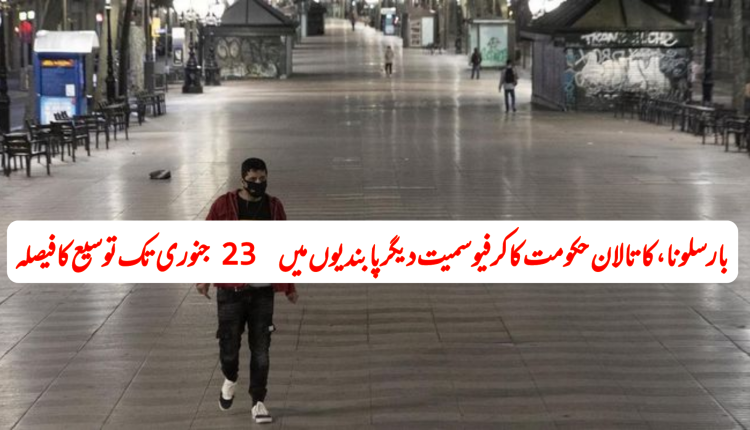 بارسلونا: کورونا وائرس کی نئی لہر کے باعث کاتالونیا میں 24 دسمبر سے کو نافذ ہونے والی پابندیاں 9 جنوری کو ختم ہورہی ہیں۔ میڈیا رپورٹس کے مطابق صوبہ کاتالونیا میں پابندیوں میں 14 روز کی توسیع لئے مشاورت شروع کردی گئی ہے۔ پابندیوں میں توسیع کی صورت میں یہ 23 جنوری تک نافذ العمل رہیں گی۔