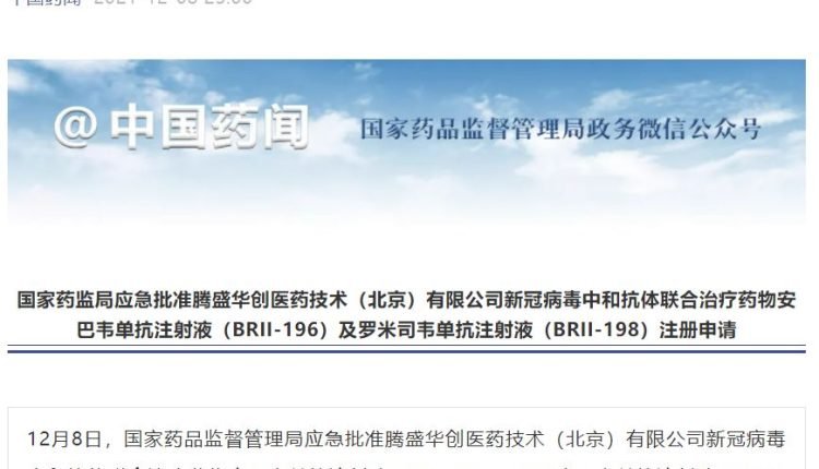 ہیں۔ چین کی کووڈ-۱۹ کے علاج کے لیے منظور کردہ نیوٹرلائزنگ اینٹی باڈی کمبینیشن تھراپی کی پہلی ادویہ ہیں جو آزادانہ حقوقِ املاک دانش کی حامل ہیں۔