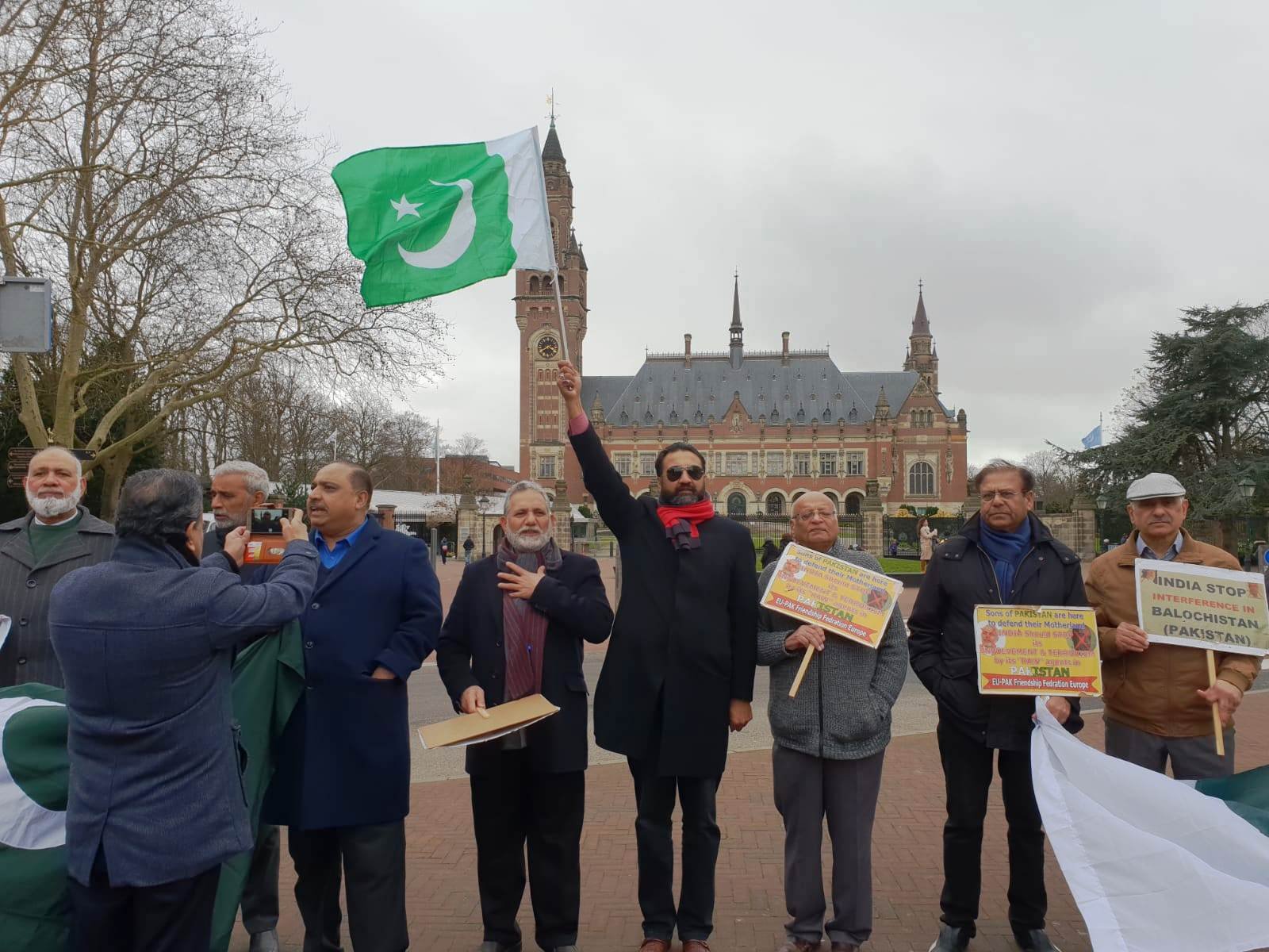 دی ہیگ: ای یو پاک فرینڈشپ فیڈریشن یورپ کی جانب سے عالمی عدالت انصاف کے سامنے بھارت کے خلاف احتجاج اور پاکستانی عوام و مسلح افواج سے اظہار یکجہتی کے لئے مظاہرہ کیا گیا۔