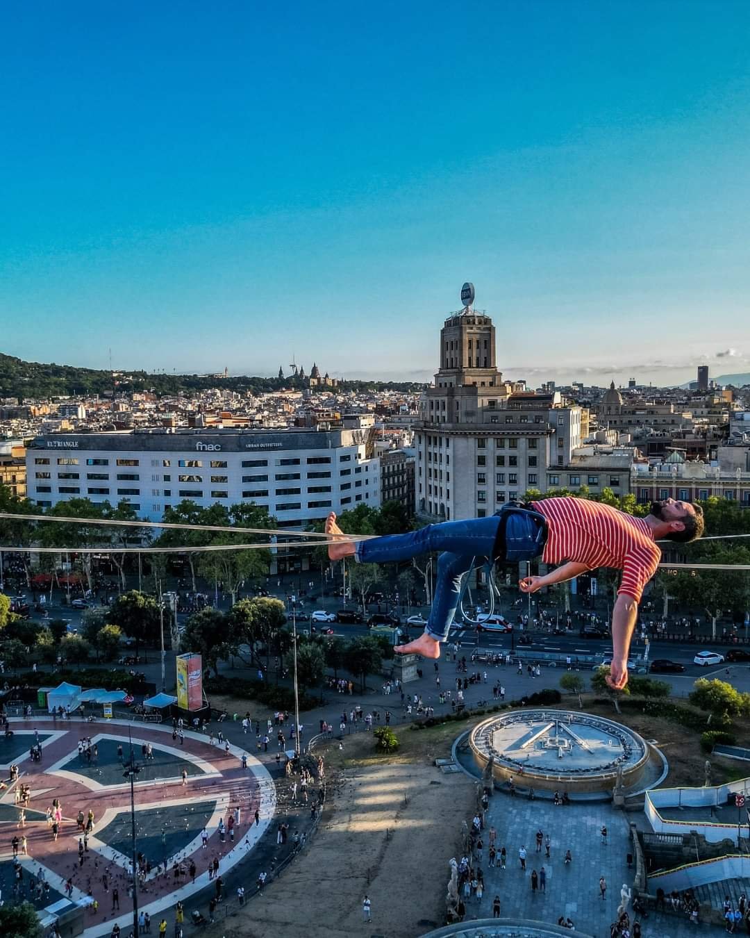 عالمی شہرت یافتہ متعدد ورلڈ ریکارڈ بنانے والے نیتھن پالن نے گریک فیسٹیول کے موقع پر بارسلونا میں سٹیل کی رسی پر چلتے ہوئے اپنے فن کا مظاہرہ کیا۔ انھوں نے یہ مظاہرہ بارسلونا سنٹر کے علاقے میں کیا۔رسی کی زمین سے اونچائی 70 میٹر جبکہ لمبائی 350 میٹر کے قریب تھی۔