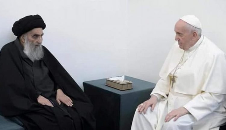 پوپ فرانسس نے عراق کے تاریخی دورے پر ملک کے ممتاز عالم دین آیت اللہ علی سیستانی سے نجف میں ان کی رہائشگاہ پر ملاقات کی ہے۔میڈیا رپورٹس کے ملاقات میں دونوں مذہبی رہنماؤں نے عراق کے اقلیتی عیسائیوں کے حفاظت کے حوالے سے بات چیت کی گئی۔