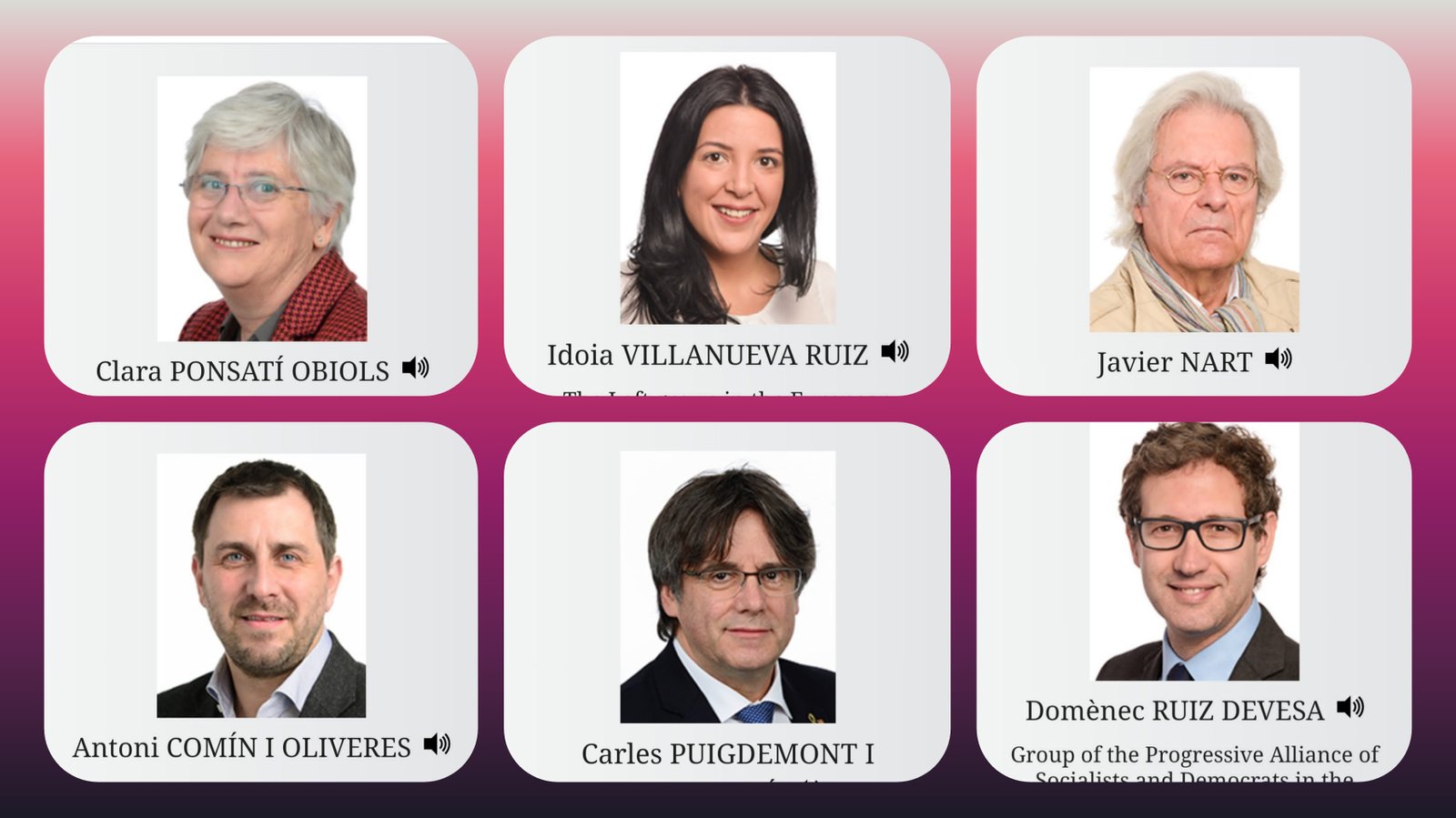 اسپین کی جانب سے یورپین پارلیمنٹ میں بھارت کے کشمیر پر غاصبانہ قبضے کے بعد انسانی حقوق کی شدید پامالی پر خط لکھنے والے یورپین پارلمینٹیرین6 ہسپانوی ممبران شامل ہیں۔ جس میں کاتالان آذادی پسند رہنما پوجدیمونت اور ان کی پارٹی کے دیگر دو آراکین شامل ہیں۔ اس میں ایک رکن سوشلسٹ پارٹی اور ایک رکن سیوتادانس جماعت کا اور پودیموس کی جانب سے واحد یورپین پارلمینٹیرین ایدویا ولا نوا رویز شامل ہیں۔یوں مجموعی طور دونوں حکومتی جماعتوں ، حزب اختلاف اور آذادی پسند جماعتوں نے کشمیر کے موقف کی تائید کی ہے۔