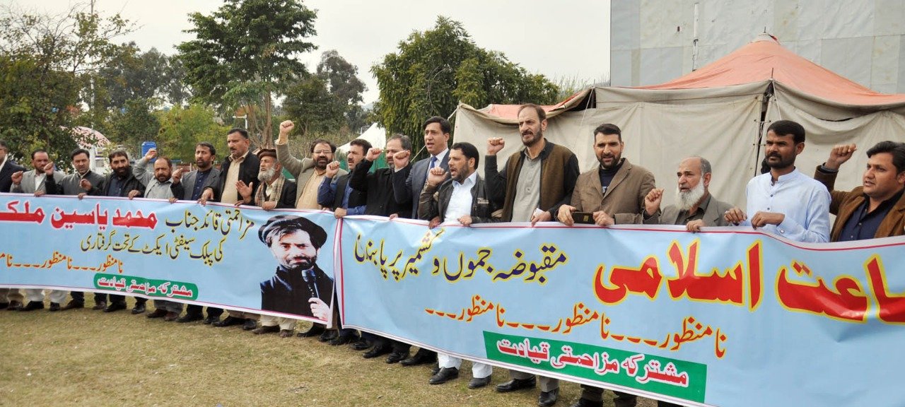 مظاہرین نے پلے کارڈز اور بینرز اٹھا رکھے تھے جن پر بھارتی حکومت اور فوج کے خلاف نعرے درج تھے۔ مقبوضہ کشمیر میں جماعت اسلامی پر پابندی نامنظور،،، گو انڈیا گو بیک کے نعرے لگائے۔