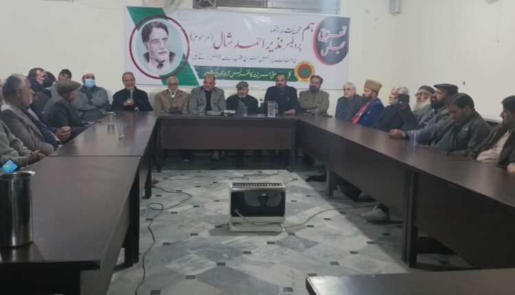 مرحوم پروفیسر نذیر احمد شال ایک دانشور ،کہی کتابوں کے مصنف ،کشمیر کاز کے علمبردار اور ایک شریف النفس انسان تھے جنہوں نے اپنی پوری زندگی تنازعہ کشمیر کے حل اورجموں وکشمیر کی بھارتی تسلط سے آزادی کے لئے وقف کی۔ مرحوم کے لئے مغفرت کی دعا کی اور سوگوار خاندان سے اظہار تعزیت کیا دعائیں مجلس میں کسیر تعداد میں لوگوں نے شرکت کی۔
