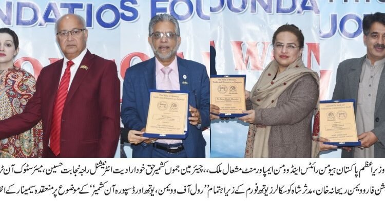 اسکالرز یوتھ فورم کے زیر اہتمام ”رول آف وویمن، یوتھ اور ڈسپورہ آن کشمیر“ کے موضوع پر مظفر آباد میں سیمینار کا انعقاد کیا گیا۔ جس کی مہمان خصوصی معاون خصوصی برائے وزیر اعظم پاکستان ہیومن رائٹس اینڈ وومن ایمپاورمنٹ مشعال ملک تھیں۔