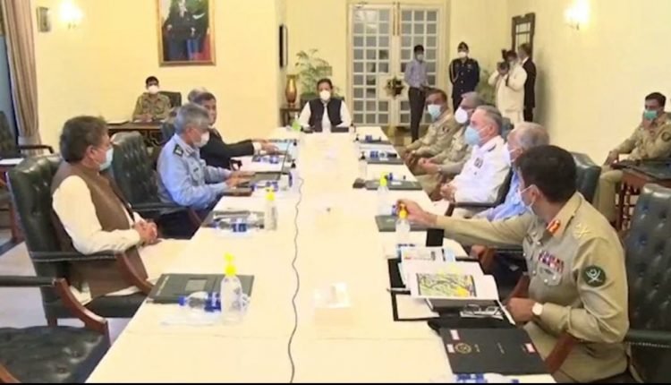 وزیراعظم عمران خان کی زیرصدارت اعلی ٰ سطح اجلاس میں چئیر مین جوائنٹ چیفس آف اسٹاف کمیٹی جنرل ندیم رضا ، آرمی چیف جنرل قمر جاوید باجوہ ،پاک فضائیہ کے سربراہ ائیر مارشل مجاہد انور خان ، پاک بحریہ کے سربراہ ایڈمرل ظفر محمود عباسی اورڈی جی آئی ایس آئی لیفٹیننٹ جنرل فیض حمید اور وزیر دفاع پرویز خٹک سمیت اعلی ٰ حکام نے شرکت کی۔