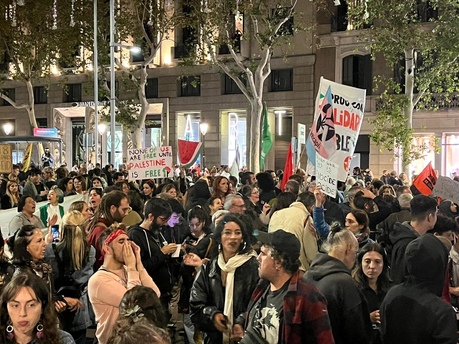 مظاہرین نے صوبہ کاتالونیا کی حکومت سے مطالبہ کیاکہ وہ اسرائیل کو تجارت اور سرمایہ کاری کے لئے اہم تصور کرنا ختم کردیں۔شرکاء نے بارسلونا میونسپل حکومت سے مطالبہ کیاکہ تل ابیب کے ساتھ تعلقات کو ختم کیا جائے۔
