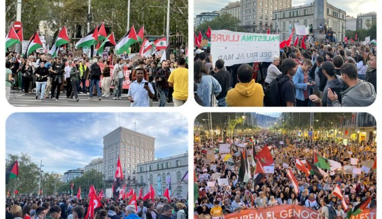 سپین میں فلسطین کے حق میں مظاہروں کا سلسلہ جاری ہے۔ آج بارسلونا کی شاہراہوں پر ہزاروں افراد نے جمع ہوکر فلسطین کے حق میں احتجاجی ریلی نکالی۔ ریلی میں بارسلونا کے علاوہ دیگر شہروں سے بھی لوگوں نے بھرپور اندازمیں شرکت کی۔ بارسلونا اور گردونواح میں مقیم پاکستانیوں نے بھی مظاہرے میں شریک ہوکر فلسطین کے لئے آواز حق بلند کی۔