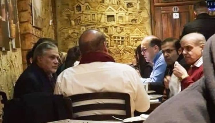 سابق وزیراعظم میاں محمد نواز شریف اس تصویر میں اپنے صاحبزادے حسن نواز، بھائی شہباز شریف، بھتیجے سلمان شہباز اور سمدھی اسحاق ڈار کے ساتھ لندن کے ایک ریستوران میں بیٹھے نظر آ رہے ہیں۔ شریف فیملی ذرائع کا کہنا ہے کہ نواز شریف ڈاکٹرز کی ہدایات کے مطابق اپنے اہلخانہ کے ہمراہ چہل قدمی کیلئے باہر گئے تھے۔