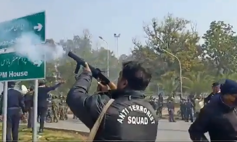 اسلام آباد کی شاہراہ دستورمیدان جنگ بن گئی،تنخواہوں میں اضافے کےلیے ملازمین کے احتجاج نے پُرتشددشکل اختیا رکرلی ۔پتھراواورشیلنگ کے بعد کئی ملازمین کو گرفتار کرلیاگیا اس کے باوجود دھرنا جاری ہے ۔ تملازمین اورپولیس میں گھمسان کی لڑائی ہوئی ۔
