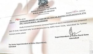 اسلام آباد پولیس دو سال بعد کیس ان ٹریس ایبل قرار دے کر داخل دفتر کر دیا ۔ دستاویزات کے مطابق تفتیشی افسر نے ملزم پکڑنے کے بجائے افسران بالا کی منظوری سے سفارش کی ہے کہ پولیس اس کیس کا کوئی سراغ نہ لگا سکی ،لہذا سفارش کی جاتی ہے کہ یہ کیس اب بند کر دیا جائے ۔