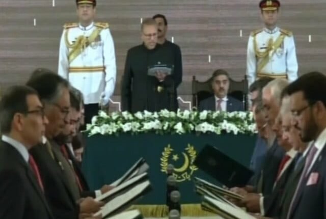 اسلام آباد:سولہ وفاقی وزراء ، تین مشیر اور پانچ خصوصی مشیر، وزیر اعظم انوار الحق  کاکڑ نے نگران  وفاقی کابینہ تشکیل دے دی ،صدرمملکت ڈاکٹر عارف علوی نے سولہ وزراء سے حلف لے لیا۔۔