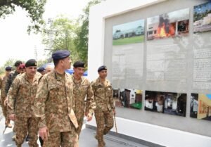 آرمی چیف نے پاک فوج کے افسران اور جوانوں کو یقین دلایا کہ کسی کو شہداء ،ان کے اہلخانہ یا ادارے کی بے حرمتی کی اجازت نہیں دی جائے گی اور 9 مئی کے منصوبہ سازوں، سہولت کاروں اور مجرموں کو انصاف کے کٹہرے میں لایا جائے گا۔ سپہ سالا رنے واضح کیاکہ اس حوالے سے آئے روز کی جانے والی اشتعال انگیزیوں کا جواب نہ دینا ہماری کمزور ی یاہمارے صبر کو لا محدود نہ سمجھا جائے۔ آرمی چیف نے لاہور گیریژن میں جناح لائبریری کا افتتاح کیااور یادگار شہداء پر پھول بھی چڑھائے ۔