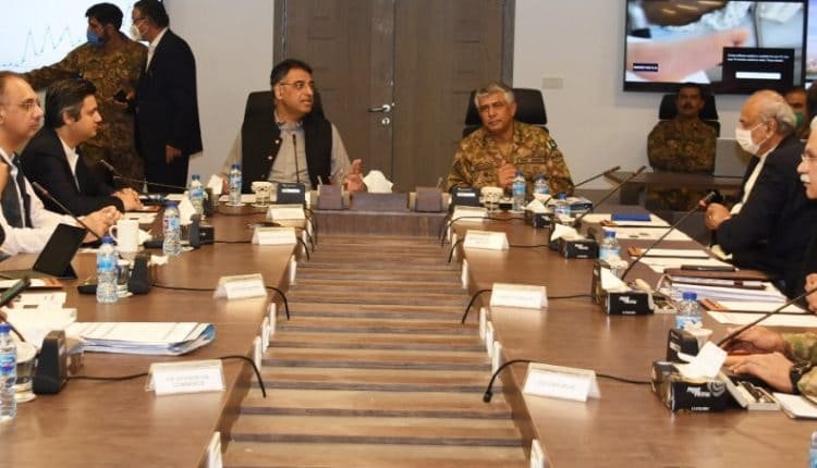 وفاقی وزیر منصوبہ بندی اسد عمر کی زیرصدارت نیشنل اینڈ کمانڈکنٹرول سینٹر کا اجلاس ہوا۔ میں وزیرداخلہ، سیکرٹری صحت سمیت اعلیٰ حکام شریک ہوئے ،صوبائی نمائندوں نے ویڈیو لنک کے ذریعے شرکت کی۔اجلاس کو بتایاگیا کہ اسلام آباد ، راولپنڈی ،کراچی،لاہور، پشاور، کوئٹہ ، مظفرآباد اور گلگت سمیت 11 شہروں میں کورونا وباء تیزی سے پھیل رہی ہے۔ اجلاس میں فیصلہ کیا گیاکہ شہریوں کے لیے گھروں سے نکلتے وقت ماسک پہننا لازم ہوگا،دفاتر میں بھی ماسک پہننے کی پابندی ہو گی ۔ ماسک نہ پہننے پر جرمانہ ہوگا۔