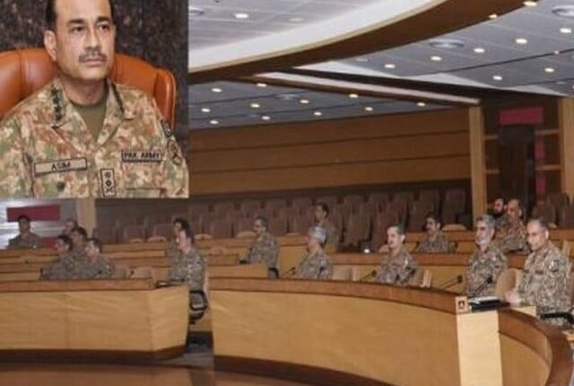 راولپنڈی : آرمی چیف جنرل سید عاصم منیر کی زیر صدارت کورکما نڈز کانفرنس جنرل ہیڈکوارٹرز راولپنڈی میں ہوئی۔ شرکاء نے کہا ہے کہ ریاستی اداروں اور عوام کے درمیان خلیج پیدا کرنے کے لئے مذموم پراپیگنڈہ کرنے والوں کو مایوسی کے سوا کچھ حاصل نہیں ہو گا ۔ دہشتگردوں اور ان کے سہولت کاروں کیاتھ ریاست مکمل طاقت کے ساتھ نمٹے گی۔ کانفرنس میں قومی سلامتی کو درپیش چیلنجز ،خطرات اور جوابی حکمت عملی پر غور کیاگیا۔کور کمانڈز نے کہاکہ ہر قیمت پر پاکستان کی خود مختاری اور علاقائی سالمیت کے دفاع کیاجائے گا۔