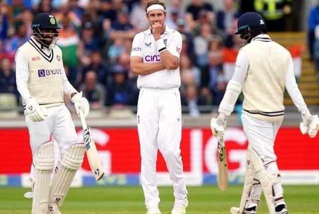 برمنگھم میں کھیلے جارہے میچ میں بھارتی ٹیم ابتداء میں مشکلات کا شکار رہی تاہم کپتان ریشبھ پنٹ کے 146 اور جڈیجا کے 104 رنز کی بدولت بھارتی ٹیم پہلی اننگز میں 416 رنز بنانے میں کامیاب ہوئی۔