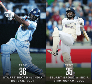 انگلینڈ اور بھارت کے مابین کھیلے جارہے سیریز کے پانچویں ٹیسٹ میچ میں جسپریت بہمرا نے انگلش فاسٹ بولر اسٹیورٹ براڈ کو ایک اوور میں 35 رنز جڑدیئے۔اس سے قبل 2003 میں برائن لارا نے روبن پیٹرسن کو ایک اوور میں 28، جارج بیلی نے 2013 میں جیمز اینڈرسن کو پرتھ کے مقام پر 28، کیشیو مہاراج نے جو روٹ کو 2020 میں ایک اوور میں 28 مارے تھے۔