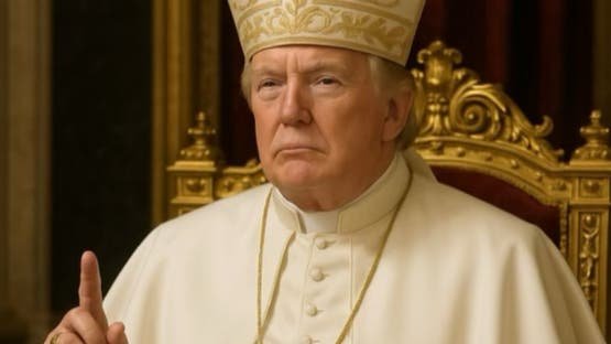 اس رنگین تصویر میں ٹرمپ کو کیتھولک پوپ کی مخصوص سفید پوشاک، طلائی صلیب کا لاکٹ اور لمبی ٹوپی (میٹری) پہنے دکھایا گیا ہے۔ ان کی دائیں انگلی آسمان کی طرف اٹھی ہوئی ہے، جو روایتی مذہبی اشارہ سمجھا جاتا ہے۔