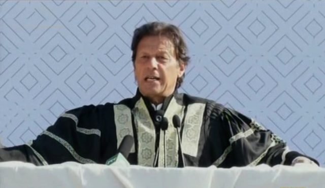 نمل یونیورسٹی میانوالی کے چھٹے کانووکیشن سے خطاب کرتے ہوئے وزیراعظم کا کہنا تھا کہ طلبہ کے والدین کے چہروں پر خاص خوشیاں دیکھ رہا ہوں، طلبا سے زیادہ والدین کے چہروں پرخوشی ہے، دیہاتی علاقے میں پرائیویٹ یونیورسٹی کے بارے کوئی سوچ بھی نہیں سکتا تھا، اتنے دور دراز علاقے میں یونیورسٹی قائم کرنا مشکل ہوتاہے۔