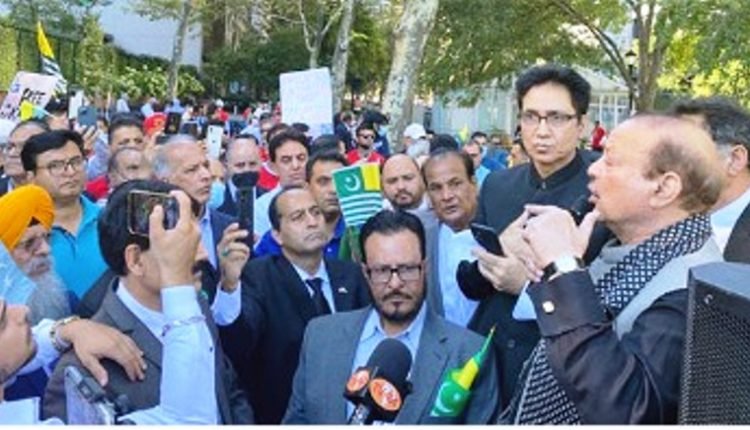 اقوام متحدہ کی جنرل اسمبلی سے بھارتی وزیراعظم نریندر مودی کے خطاب کے موقع پر نیویارک میں اقوام متحدہ کے دفتر کے سامنے صدر آزاد جموں و کشمیر بیرسٹر سلطان محمود چوہدری کی قیادت میں ہزاروں کشمیریوں اور پاکستانیوں نے زبردست احتجاجی مظاہرہ کیا۔
