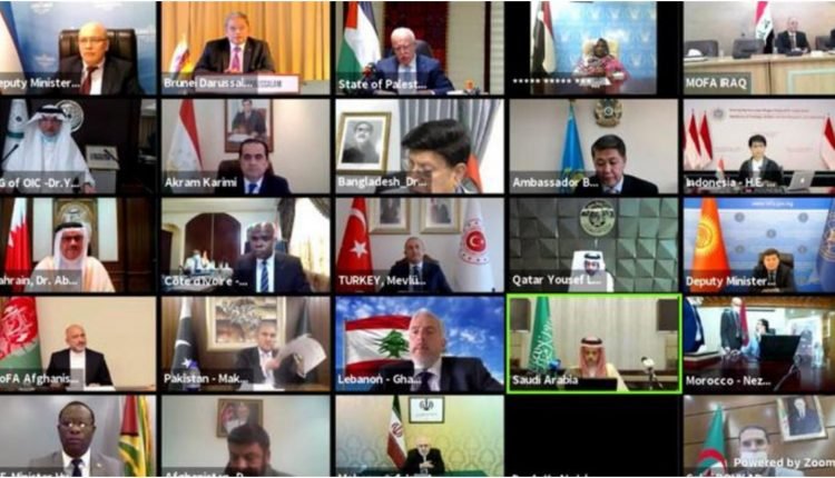 سعودی عرب کی درخواست پر مقبوضہ فلسطین کی صورتحال کے حوالے سے 57 اسلامی ممالک کا ورچوئل اجلاس ہوا۔ جس کے بعد جاری اعلامیے میں مقبوضہ فلسطینی علاقوں پر اسرائیلی بربریت کی شدید مذمت کرتے ہوئے فلسطینی علاقوں پر اسرائیلی جارحیت، مسجدالاقصیٰ سمیت تمام مقدس مقامات کی بےحرمتی فوری بند کرنے اور سلامتی کونسل سے اسرائیلی بربریت رکوانے کے لیے فوری اقدام کا مطالبہ کیا گیا ہے