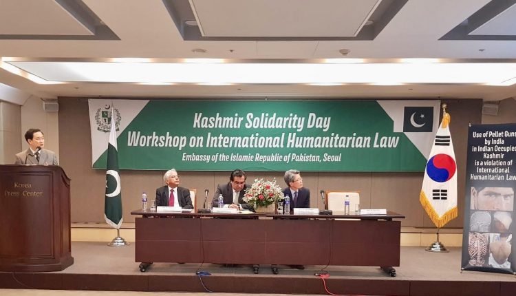 جنوبی کوریا؛ سیول میں پاکستان سفارتخانے مقبوضہ کشمیر کی مظلوم عوام سے اظہار یکجہتی کے لیے انٹرنیشنل ہیومنٹیرین لاء سیمینار کا انعقاد کیا گیا،  سیمینار میں مقبوضہ کشمیر میں نہتے کشمیریوں پر بھارت کے بڑھتے مظالم و بربریت، خصوصاً بچوں، بوڑھوں اور عورتوں پر پیلٹ گن کے سفاکانہ استعمال کی شدیت مذمت کی گئی۔