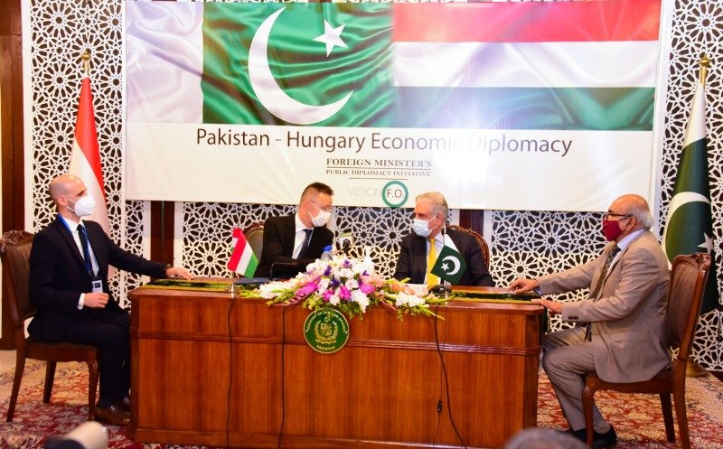 ہنگری کے وزیر خارجہ نے پاکستان میں کاروباری کمپنیوں کو کاروبار کیلئے 84 ملین ڈالر کریڈٹ لائن دینے کا اعلان کیا ہے، میں وزیرخارجہ سجارتو کا شکرگزار ہوں کہ وہ پاکستان آتے ہوئے اپنے ساتھ موثر کاروباری شخصیات اور سرمایہ کاروں کی ایک بڑی تعداد کو ہمراہ لائے تاکہ پاکستان میں سرمایہ کاری کے میسر مواقعوں کا جائزہ لیا جا سکے۔