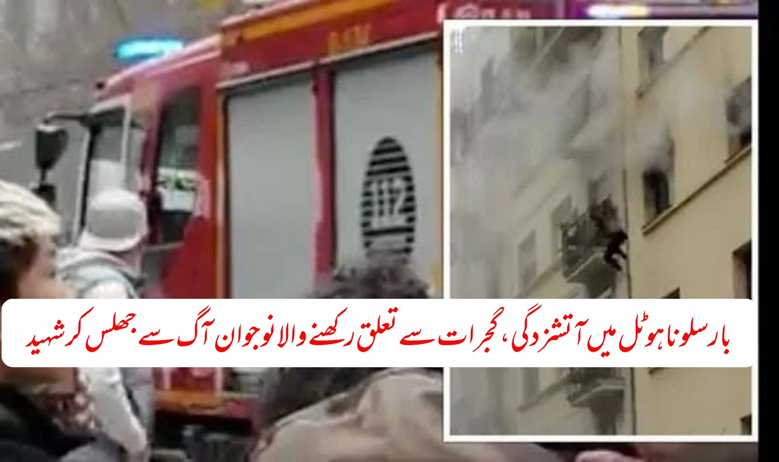بارسلونا کے علاقے پابلے سیک کے علاقے میں واقع ہوٹل میں آتشزدگی کے نتیجے میں ایک پاکستانی نوجوان شہید ہو گیاہے۔ آتشزدگی کے باعث 9 افراد زخمی ہوئے جن میں سے دو کی تشویشناک حالت کے باعث ان کو ہسپتال منتقل کیاگیا۔ آگ پھیلنے کے باعث لوگوں نے ہوٹل کی تیسری منزل سے چھلانگیں لگائیں جس کے نتیجے میں وہ زخمی ہوئے۔