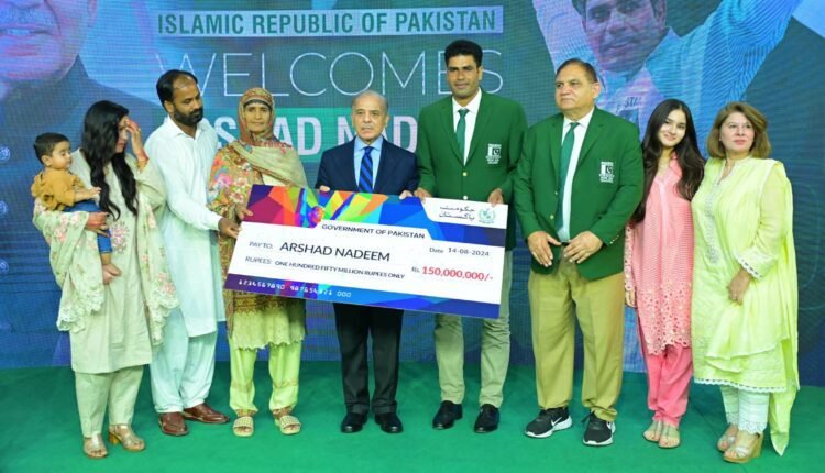 وزیراعظم کا اولمپئن ارشد ندیم کیلئے 15 کروڑ روپے کے انعام کا اعلان