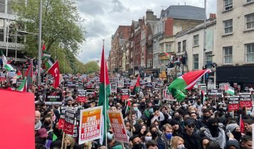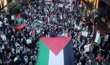 لندن میں فلسطین کےحق میں بڑی تعداد میں مظاہرین سڑکوں پر نکل آئےفلسطینی پرچم تھامےمظاہرین Marble Arch پر جمع ہوئے اور اسرائیلی سفارتخانےکی جانب مارچ کیا۔