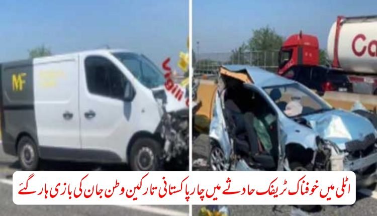 روم. اٹلی کے شہر ٹورینو میں خوفناک ٹریفک حادثےمیں 4 پاکستانی نوجوان جاں بحق اور ایک شدید زخمی ہوگیاہے۔حادثہ اے فور موٹر وے پر پیش آیا جہاں وین اور کارسے ٹکرا گئی۔