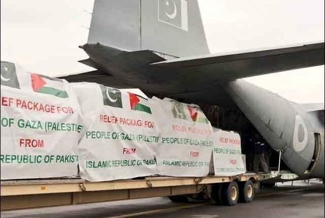 فلسطینیوں کی مدد کے لیے ضروری سامان پر مشتمل کھیپ خصوصی پرواز کے ذریعے نورخان ائربیس سے روانہ کی گئی، جس میں غزہ کی زمینی ضروریات کے مطابق موسم سرما کے لیے گرم خیمے، ترپال اور کمبل شامل ہیں۔