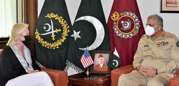 مسلح افواج کے شعبہ تعلقات عامہ کی جانب سے جاری بیان کے مطابق آرمی چیف جنرل قمر جاوید باجوہ سے پاکستان میں امریکی سفارت خانے کی ناظم الامور انجیلا ایگلر نے جی ایچ کیو راولپنڈی میں ملاقات کی۔جس میں باہمی دلچسپی کے امور، علاقائی سیکیورٹی کی صورتحال پر تبادلہ خیال کیا گیا، ملاقات میں افغانستان کی موجودہ صورتحال پر بھی گفتگو کی گئی۔ ملاقات میں مختلف شعبہ جات میں باہمی تعاون پر بھی تبادلہ خیال کیا گیا۔