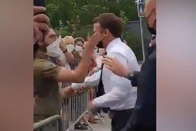 ایمانوئیل میکرون جیسے ہی ایک عمارت سے باہر نکلے تو سامنے موجود افراد نے تالیاں بجا کر ان کا استقبال کیا جس پر صدر نے آگے بڑھتے ہوئے ٹی شرٹ پہنے اور ماسک لگائے نوجوان سے ہاتھ ملایا۔نوجوان نے ہاتھ ملاتے ہی صدر ایمانوئیل میکرون کے منہ پر تھپڑ جڑ دیا۔ صدر اس اچانک حملے سے گھبرا گئے اور حواس باختہ ہوگئے۔ سیکیورٹی اہلکاروں نے فوراً صدر کو نوجوان سے دور کیا۔ اس دوران وہ نوجوان میکرون اور ان کی پالیسیوں کے خلاف نعرے لگاتا رہا۔