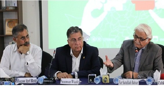 ملک انور تاج ایم این اے ، پی ٹی آئی، سینئر تجزیہ کار حسن خان اور یو این ڈی پی سے ڈاکٹر اشرف علی نے بھی اظہار خیال کیا۔