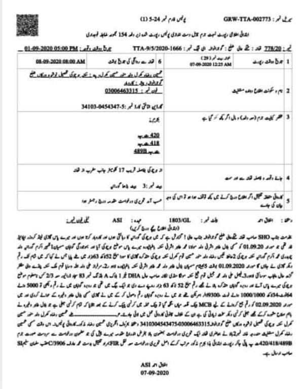 پولیس نے مدعی مقدمہ تحسین کھر کی جانب سے درخواست پر مقدمہ درج کر کے قانونی کارروائی کا آغاز کر دیا ہے۔