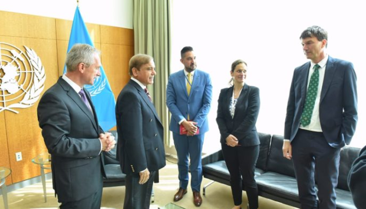 نیویارک میں اقوام متحدہ کی جنرل اسمبلی کے اجلاس کے لیے موجود وزیر اعظم شہباز شریف سے سائڈ لائن پر اقوام متحدہ جنرل اسمبلی کے صدر سابا کوروسی نے ملاقات کی۔