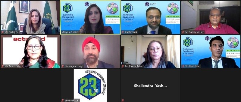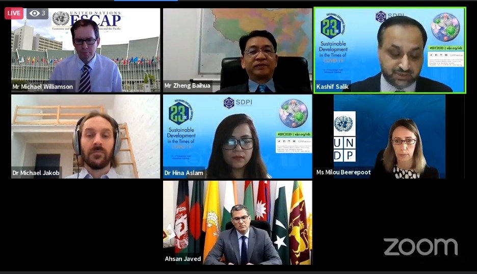 پالیسی ادارہ برائے پائیدار ترقی (ایس ڈی پی آئی) کی 23 ویں سالانہ کانفرنس کے تیسرے دن کانفرنس میں پاکستان کو درپیش معاشی آوٹ ریچ انیشی ایٹو اور غیرروایتی سلامتی کے خطرات کے موضوع پرخطاب کرتے ہوئے وزیراعظم کے قومی سلامتی کے مشیر ڈاکٹر معید یوسف نے کہا کہ وزیراعظم عمران خان معاشی تحفظ، رابطے، علاقائی امن اور ترقیاتی شراکت داری کو ملکی معیشت کا ایک مضبوط اقدام قرار دیتے ہیں۔ اسی لئے ہم افغانستان اور وسطی ایشیائی ملکوں کے ساتھ روابط اور امن چاہتے ہیں۔