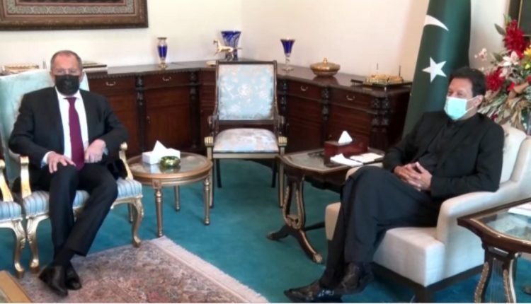 وزیر اعظم عمران خان نے روسی وزیر خارجہ کو سپوتنک ویکسین بنانے پر مبارکباد دی اور پاکستان کی جانب سے ویکسین کی خریداری میں دلچسپی بھی ظاہر کی۔ملاقات میں پاک روس دوطرفہ تعلقات اور علاقائی امور پر بھی تبادلہ خیال کیا گیا۔ وزیراعظم نے دوطرفہ تعلقات پر اطمینان کا اظہارکرتے ہوئے کہاکہ “پاکستان اسٹریم” گیس پائپ لائن منصوبے پرجلد از جلد کام شروع کرنے کے عزم کا اعادہ کیا۔وزیراعظم نے افغانستان تنازعہ کے سیاسی حل کی اہمیت پر زور دیا، جبکہ افغان امن عمل کو فروغ دینے میں روس کی کوششوں کو سراہا۔وزیراعظم نے مقبوضہ کشمیر کے حوالے سے پاکستانی موقف سے بھی آگاہ کیا۔دونوں رہنماوں مسلہ کشمیر کے پرامن حل کی ضرورت پر زوردیا جبکہ مشرق وسطی سمیت خطے کی صورتحال پر بھی تبادلہ خیال کیا۔۔
